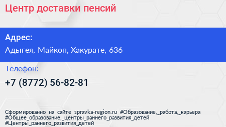 Центр доставки пенсий по адресу Адыгея, Майкоп, Хакурате, 636 в дальнейшем Организация, размещена в следующих категориях: