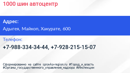 1000 шин, автоцентр по адресу Адыгея, Майкоп, Хакурате, 600 в дальнейшем Организация, размещена в следующих категориях: