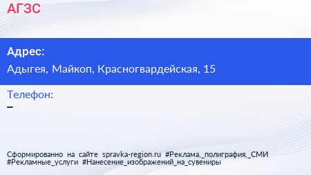 АГЗС по адресу Адыгея, Майкоп, Красногвардейская, 15 в дальнейшем Организация, размещена в следующих категориях: