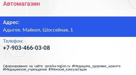 Автомагазин по адресу Адыгея, Майкоп, Шоссейная, 1 в дальнейшем Организация, размещена в следующих категориях: