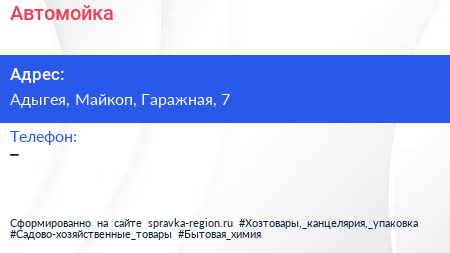 Автомойка по адресу Адыгея, Майкоп, Гаражная, 7 в дальнейшем Организация, размещена в следующих категориях: