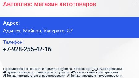 Автоплюс, магазин автотоваров по адресу Адыгея, Майкоп, Хакурате, 37 в дальнейшем Организация, размещена в следующих категориях: