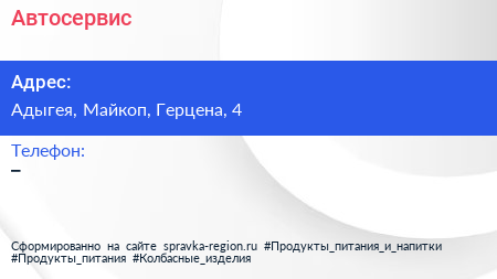 Автосервис по адресу Адыгея, Майкоп, Герцена, 4 в дальнейшем Организация, размещена в следующих категориях: