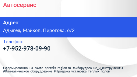 Автосервис по адресу Адыгея, Майкоп, Пирогова, 6/2 в дальнейшем Организация, размещена в следующих категориях: