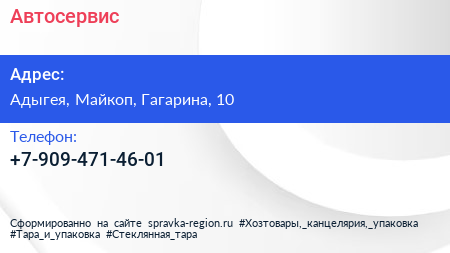 Автосервис по адресу Адыгея, Майкоп, Гагарина, 10 в дальнейшем Организация, размещена в следующих категориях: