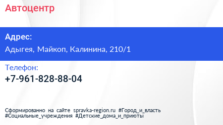 Автоцентр по адресу Адыгея, Майкоп, Калинина, 210/1 в дальнейшем Организация, размещена в следующих категориях: