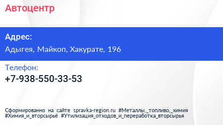 Автоцентр по адресу Адыгея, Майкоп, Хакурате, 196 в дальнейшем Организация, размещена в следующих категориях: