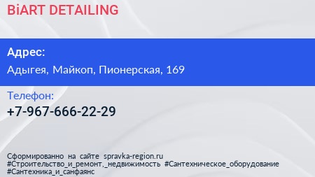 BiART DETAILING по адресу Адыгея, Майкоп, Пионерская, 169 в дальнейшем Организация, размещена в следующих категориях: