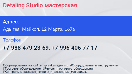 Detaling Studio, мастерская по адресу Адыгея, Майкоп, 12 Марта, 167а в дальнейшем Организация, размещена в следующих категориях: