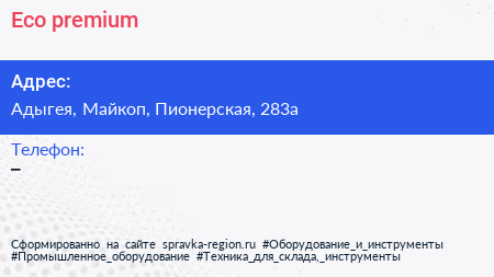 Eco premium по адресу Адыгея, Майкоп, Пионерская, 283а в дальнейшем Организация, размещена в следующих категориях: