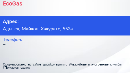 EcoGas по адресу Адыгея, Майкоп, Хакурате, 553а в дальнейшем Организация, размещена в следующих категориях: