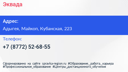 Эквада по адресу Адыгея, Майкоп, Кубанская, 223 в дальнейшем Организация, размещена в следующих категориях: