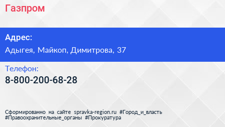 Газпром по адресу Адыгея, Майкоп, Димитрова, 37 в дальнейшем Организация, размещена в следующих категориях: