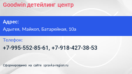 Goodwin, детейлинг-центр по адресу Адыгея, Майкоп, Батарейная, 10а в дальнейшем Организация, размещена в следующих категориях: