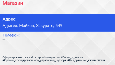 Магазин по адресу Адыгея, Майкоп, Хакурате, 549 в дальнейшем Организация, размещена в следующих категориях: