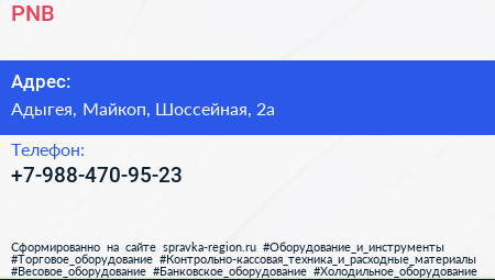PNB по адресу Адыгея, Майкоп, Шоссейная, 2а в дальнейшем Организация, размещена в следующих категориях: