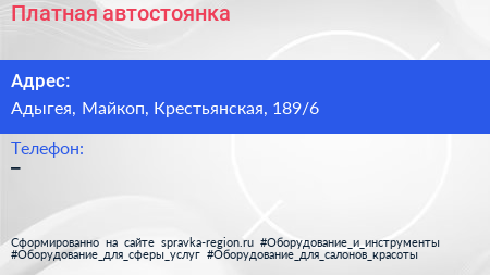 Платная автостоянка по адресу Адыгея, Майкоп, Крестьянская, 189/6 в дальнейшем Организация, размещена в следующих категориях: