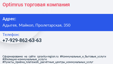 Optimrus, торговая компания по адресу Адыгея, Майкоп, Пролетарская, 350 в дальнейшем Организация, размещена в следующих категориях: