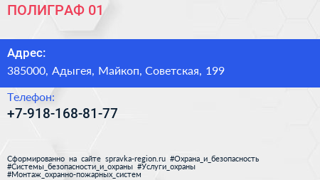 ПОЛИГРАФ 01 по адресу 385000, Адыгея, Майкоп, Советская, 199 в дальнейшем Организация, размещена в следующих категориях: