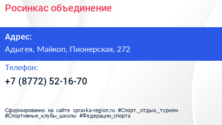 Росинкас, объединение по адресу Адыгея, Майкоп, Пионерская, 272 в дальнейшем Организация, размещена в следующих категориях: