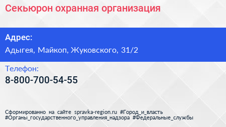 Секьюрон, охранная организация по адресу Адыгея, Майкоп, Жуковского, 31/2 в дальнейшем Организация, размещена в следующих категориях: