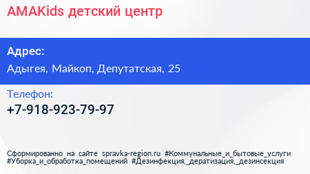 AMAKids, детский центр по адресу Адыгея, Майкоп, Депутатская, 25 в дальнейшем Организация, размещена в следующих категориях: