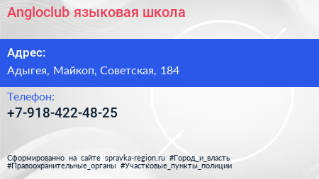 Angloclub, языковая школа по адресу Адыгея, Майкоп, Советская, 184 в дальнейшем Организация, размещена в следующих категориях: