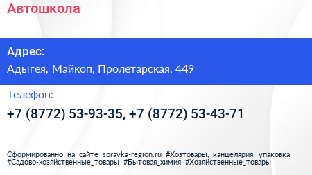 Автошкола по адресу Адыгея, Майкоп, Пролетарская, 449 в дальнейшем Организация, размещена в следующих категориях: