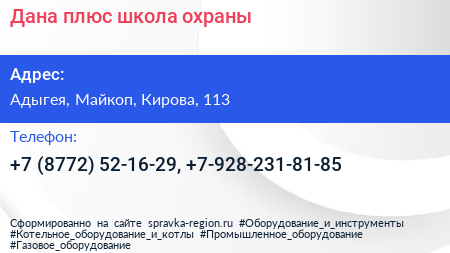 Дана-плюс, школа охраны по адресу Адыгея, Майкоп, Кирова, 113 в дальнейшем Организация, размещена в следующих категориях: