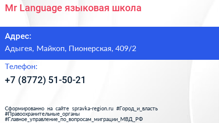 Mr.Language, языковая школа по адресу Адыгея, Майкоп, Пионерская, 409/2 в дальнейшем Организация, размещена в следующих категориях: