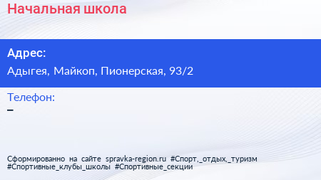 Начальная школа по адресу Адыгея, Майкоп, Пионерская, 93/2 в дальнейшем Организация, размещена в следующих категориях: