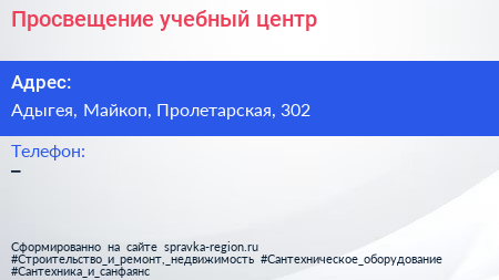 Просвещение, учебный центр по адресу Адыгея, Майкоп, Пролетарская, 302 в дальнейшем Организация, размещена в следующих категориях:
