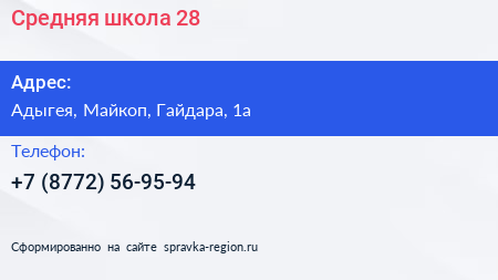 Средняя школа №28 по адресу Адыгея, Майкоп, Гайдара, 1а в дальнейшем Организация, размещена в следующих категориях: