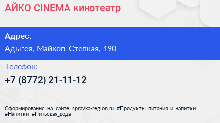 АЙКО CINEMA, кинотеатр по адресу Адыгея, Майкоп, Степная, 190 в дальнейшем Организация, размещена в следующих категориях: