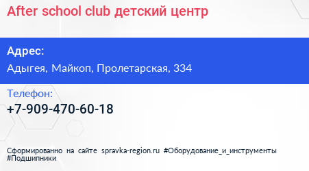 After school club, детский центр по адресу Адыгея, Майкоп, Пролетарская, 334 в дальнейшем Организация, размещена в следующих категориях: