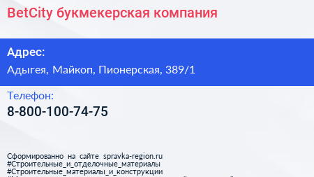 BetCity, букмекерская компания по адресу Адыгея, Майкоп, Пионерская, 389/1 в дальнейшем Организация, размещена в следующих категориях: