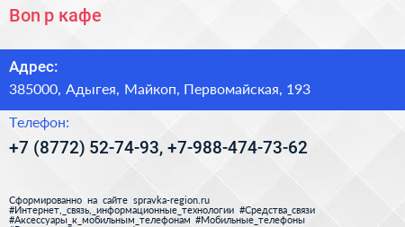 Bon`@p, кафе по адресу 385000, Адыгея, Майкоп, Первомайская, 193 в дальнейшем Организация, размещена в следующих категориях: