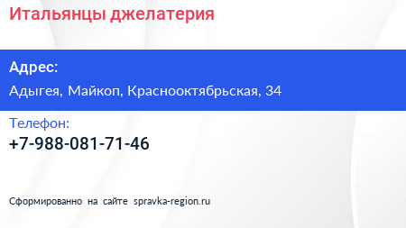 Итальянцы, джелатерия по адресу Адыгея, Майкоп, Краснооктябрьская, 34 в дальнейшем Организация, размещена в следующих категориях: