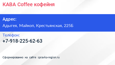 КАВА Coffee, кофейня по адресу Адыгея, Майкоп, Крестьянская, 225Б в дальнейшем Организация, размещена в следующих категориях: