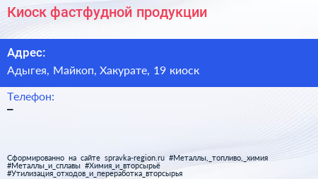 Киоск фастфудной продукции по адресу Адыгея, Майкоп, Хакурате, 19 киоск в дальнейшем Организация, размещена в следующих категориях: