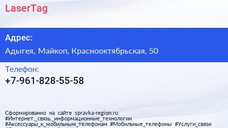 LaserTag по адресу Адыгея, Майкоп, Краснооктябрьская, 50 в дальнейшем Организация, размещена в следующих категориях: