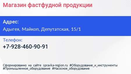 Магазин фастфудной продукции по адресу Адыгея, Майкоп, Депутатская, 15/1 в дальнейшем Организация, размещена в следующих категориях: