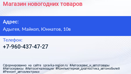Магазин новогодних товаров по адресу Адыгея, Майкоп, Юннатов, 10в в дальнейшем Организация, размещена в следующих категориях: