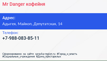 Mr.Danger, кофейня по адресу Адыгея, Майкоп, Депутатская, 14 в дальнейшем Организация, размещена в следующих категориях: