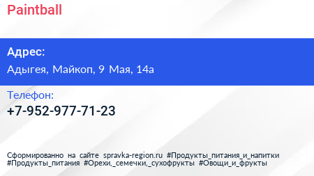 Paintball по адресу Адыгея, Майкоп, 9 Мая, 14а в дальнейшем Организация, размещена в следующих категориях: