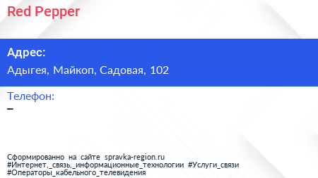 Red Pepper по адресу Адыгея, Майкоп, Садовая, 102 в дальнейшем Организация, размещена в следующих категориях: