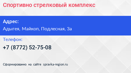 Спортивно-стрелковый комплекс по адресу Адыгея, Майкоп, Подлесная, 3а в дальнейшем Организация, размещена в следующих категориях:
