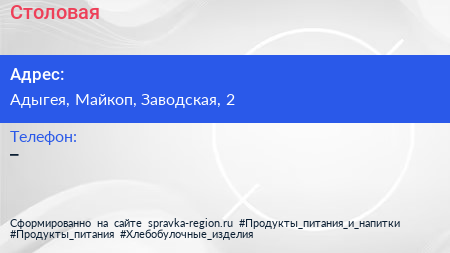 Столовая по адресу Адыгея, Майкоп, Заводская, 2 в дальнейшем Организация, размещена в следующих категориях: