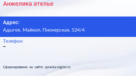 Анжелика, ателье по адресу Адыгея, Майкоп, Пионерская, 524/4 в дальнейшем Организация, размещена в следующих категориях: