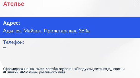 Ателье по адресу Адыгея, Майкоп, Пролетарская, 363а в дальнейшем Организация, размещена в следующих категориях:
